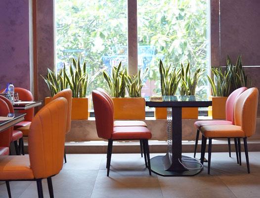 Step into a stylish throwback zone with bold colors, checkered floors, and retro-themed furniture that adds charm to your meal.