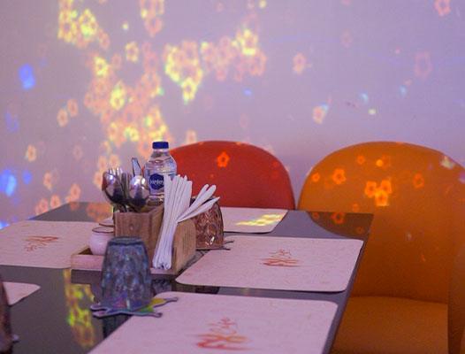 Dine among stars and planets with cosmic lighting and space-themed decor.