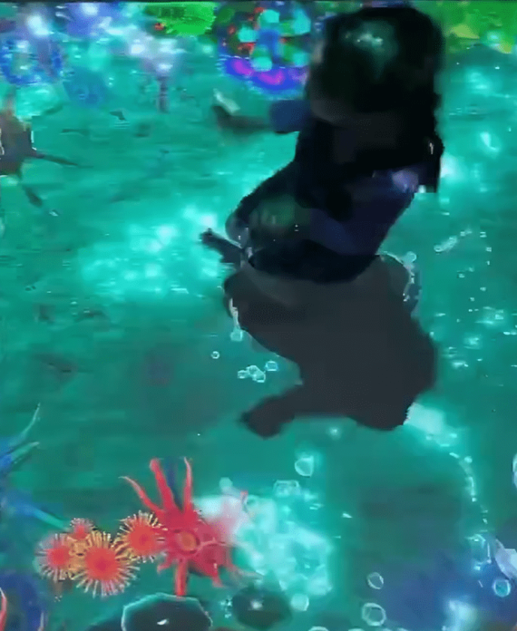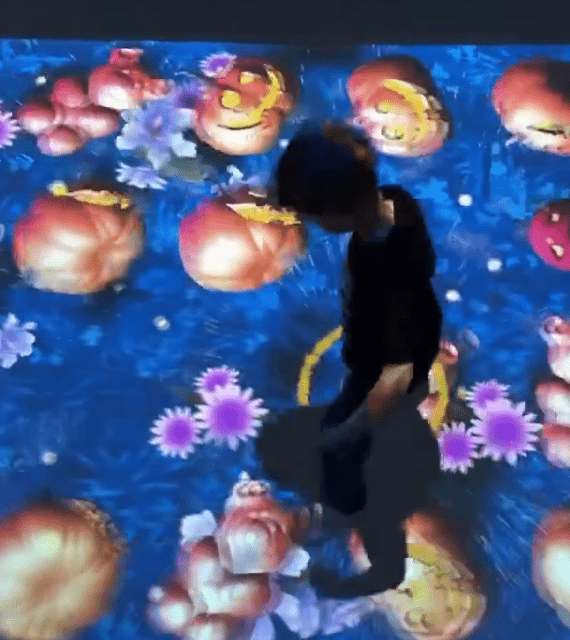 Kids can enjoy an interactive floor where characters, objects, and animal friends appear and vanish, ready to be caught or jumped on and earn points.! It’s the perfect activity for energetic kids!