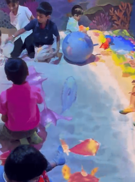 An the interactive beach, children dig and build as the landscape shifts and changes with each action. In the interactive SandBeach, children dig and build while the landscape evolves with their actions, kids can pile to shape mountains and dunes, rivers out of sand to uncover hidden Gems, artifacts or eruption of volcano.